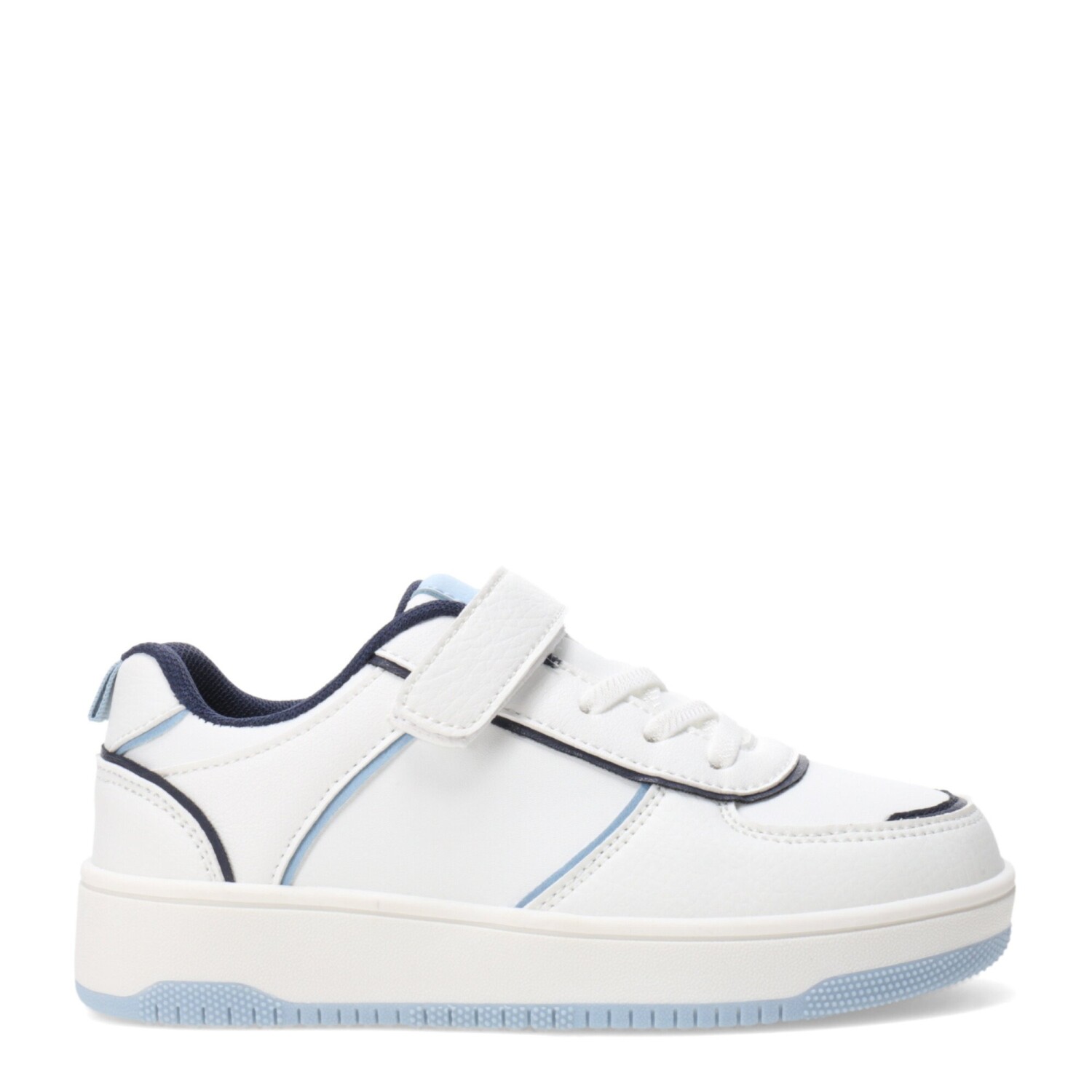 Pensados para adaptarse al ritmo activo de los niños, estos championes cuentan con un sistema de ajuste que combina velcro y cordones, ofreciendo un calce firme y fácil de colocar para mayor practicidad en el día a día.
