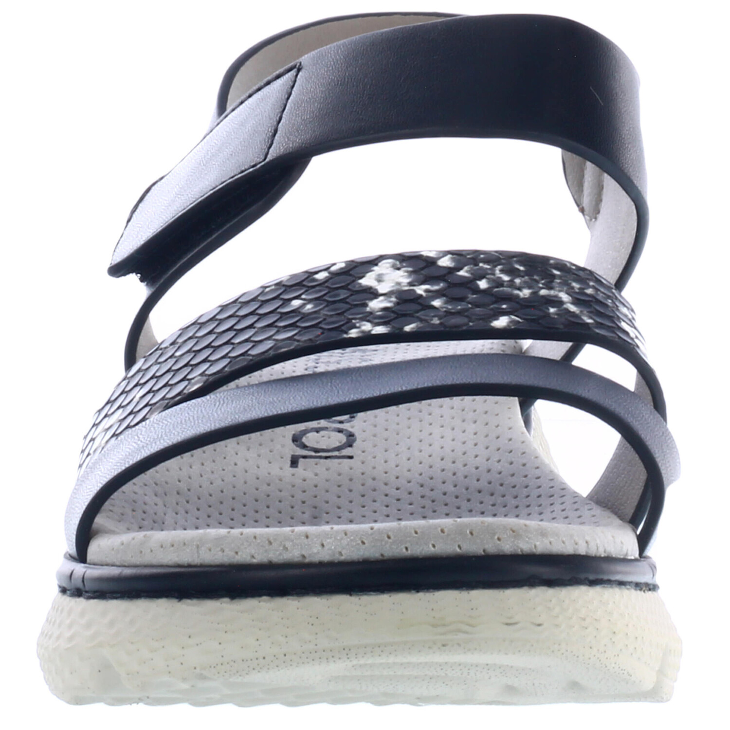 Descripción Sandalia con tobillera con velcro y materiales combinados